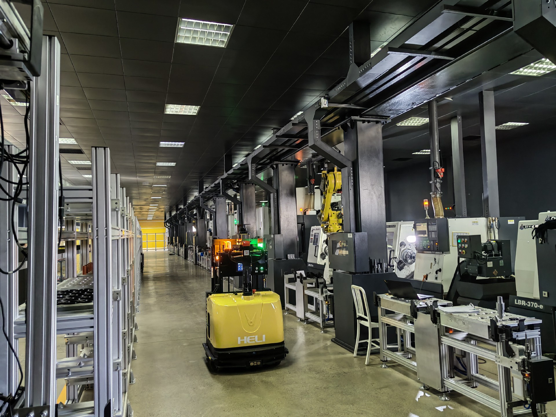 智能车间刷新,,,,,,综合使用机械臂及AGV,,,,,,凭证生产订单自动调理车床铣床机械臂AGV等装备,,,,,,自动换件、加工、刀具、卡爪替换,,,,,,使整车间抵达无人化自动运转。。。。。。